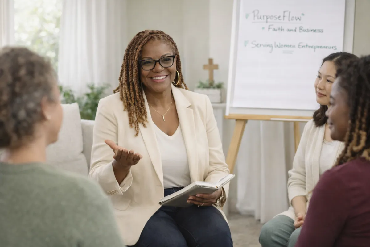 Join a God-aligned, no-hype community where Christian women entrepreneurs build clarity, confidence, and momentum together.